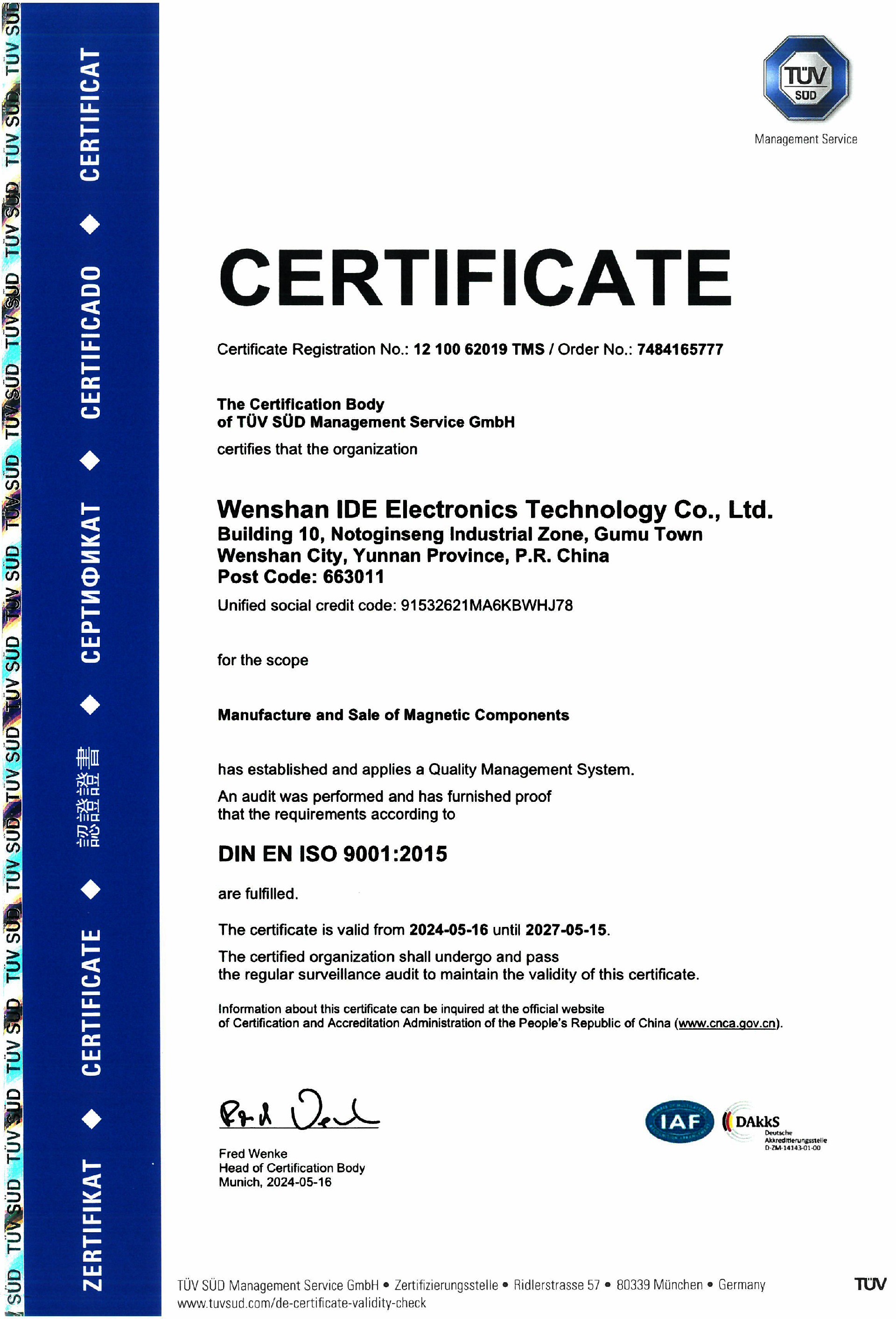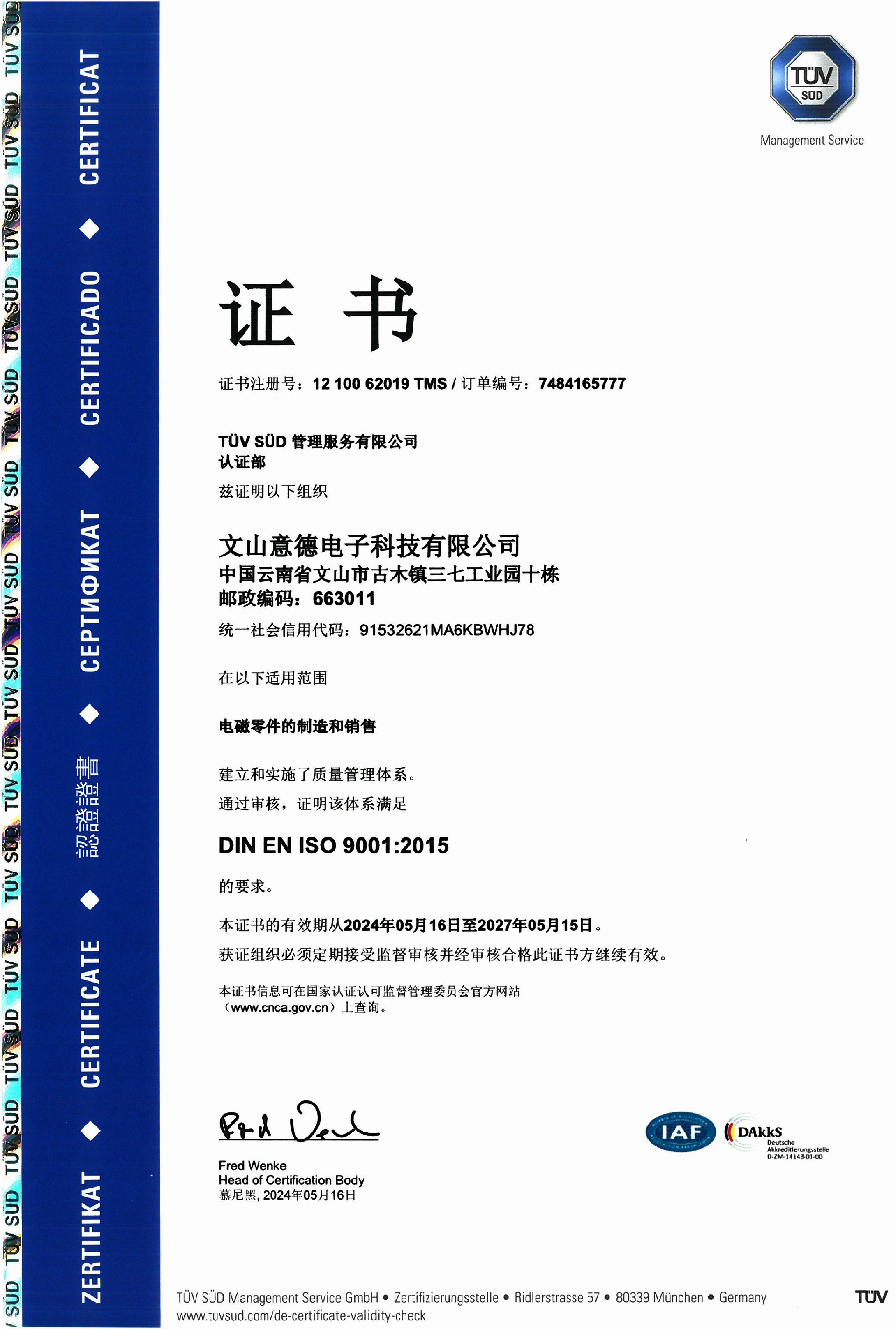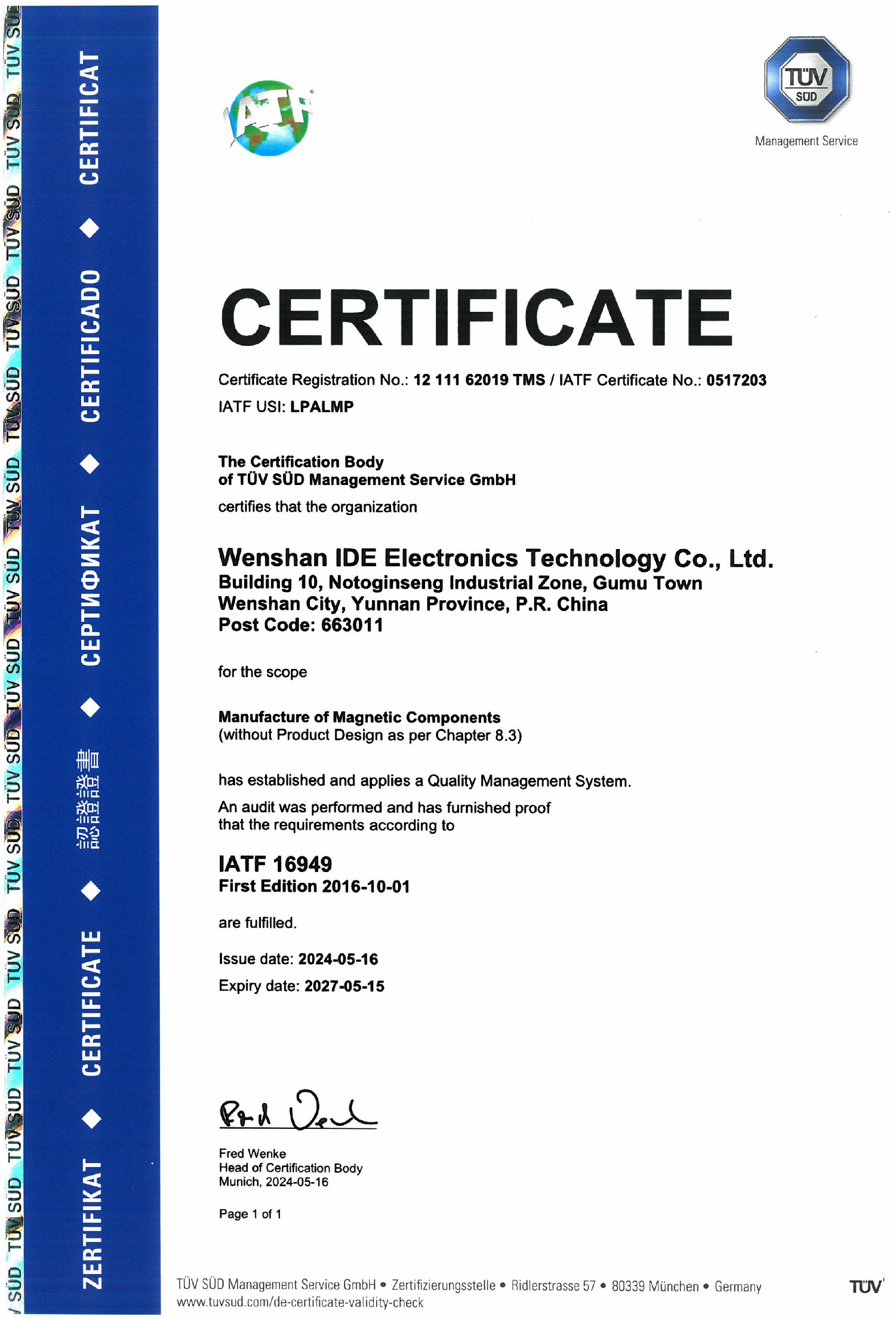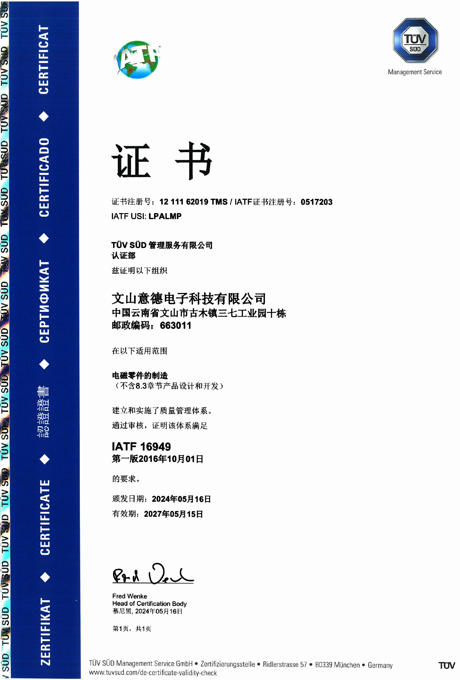 IATF 16949質(zhì)量管理體系證書-英文版 IATF 16949質(zhì)量管理體系證書-中文版