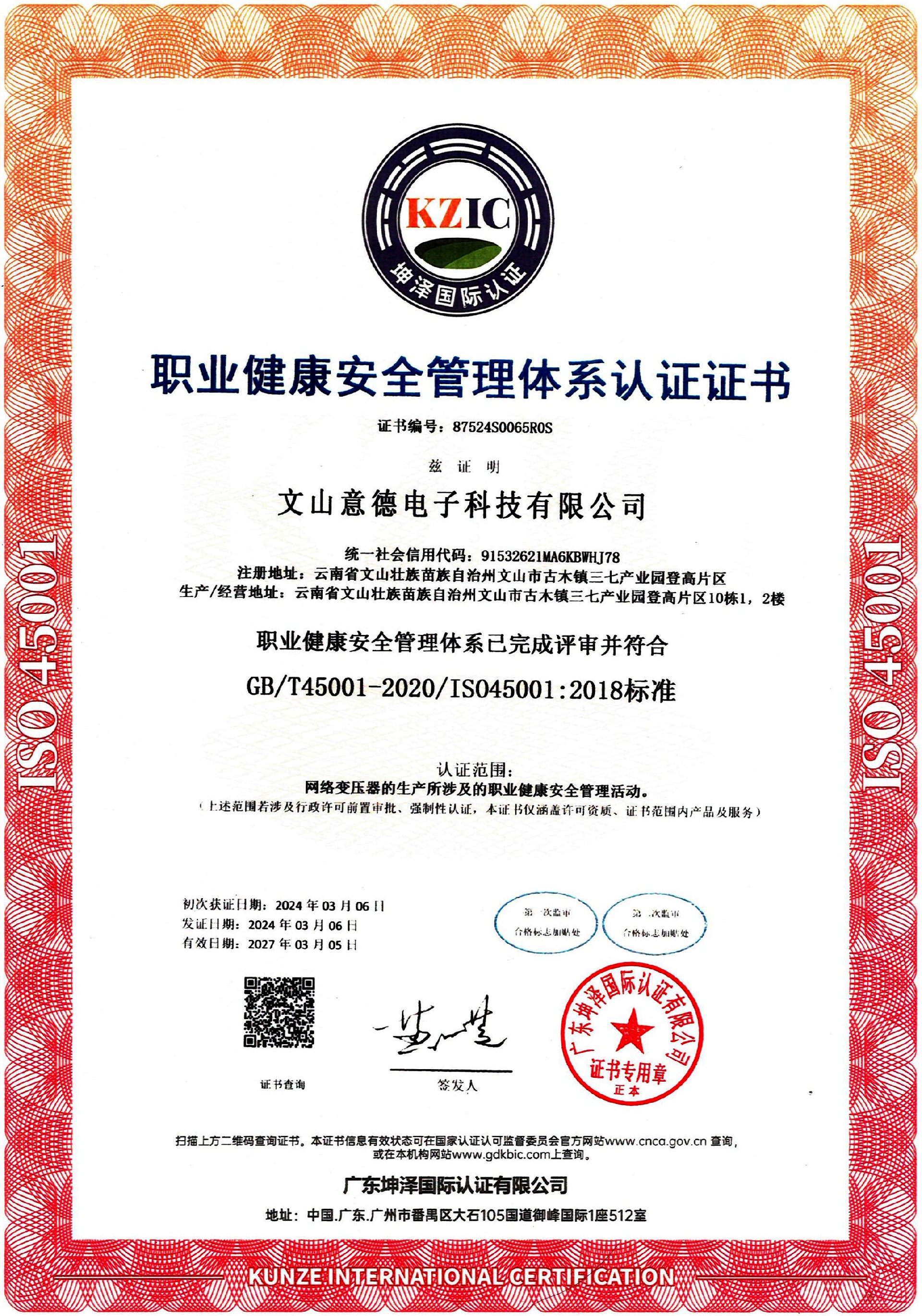ISO 9001質(zhì)量管理體系證書-英文版 ISO 9001質(zhì)量管理體系證書-中文版