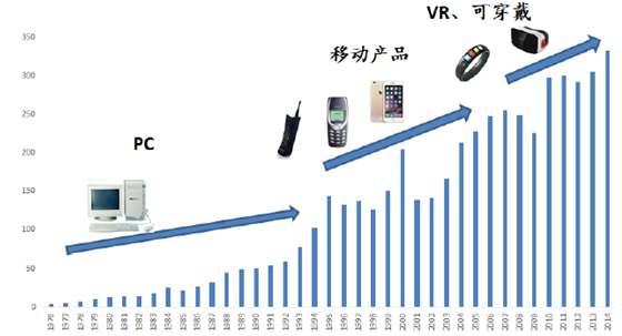 半導體是需求推進的市場,在過去四十年中,推動半導體業增長的驅動力已由傳統的PC及相關聯產業轉向移動產品市場,包括智能手機及平板電腦等,未來則可能向可穿戴設備、VR/AR設備轉移。