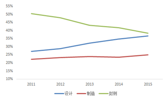 2011-2015年集成電路產業結構變化趨勢
