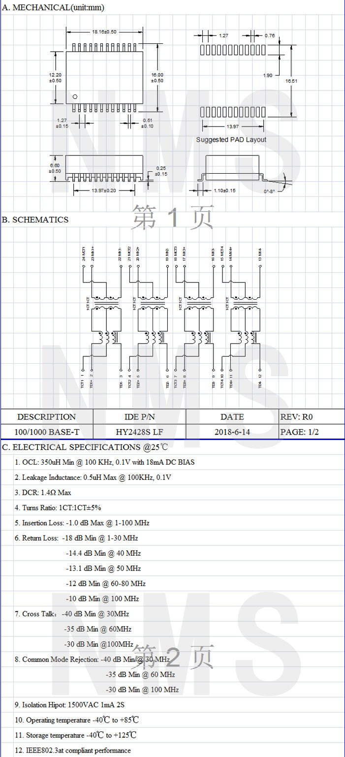 產品備注:SMD HY2428S LF產品系列